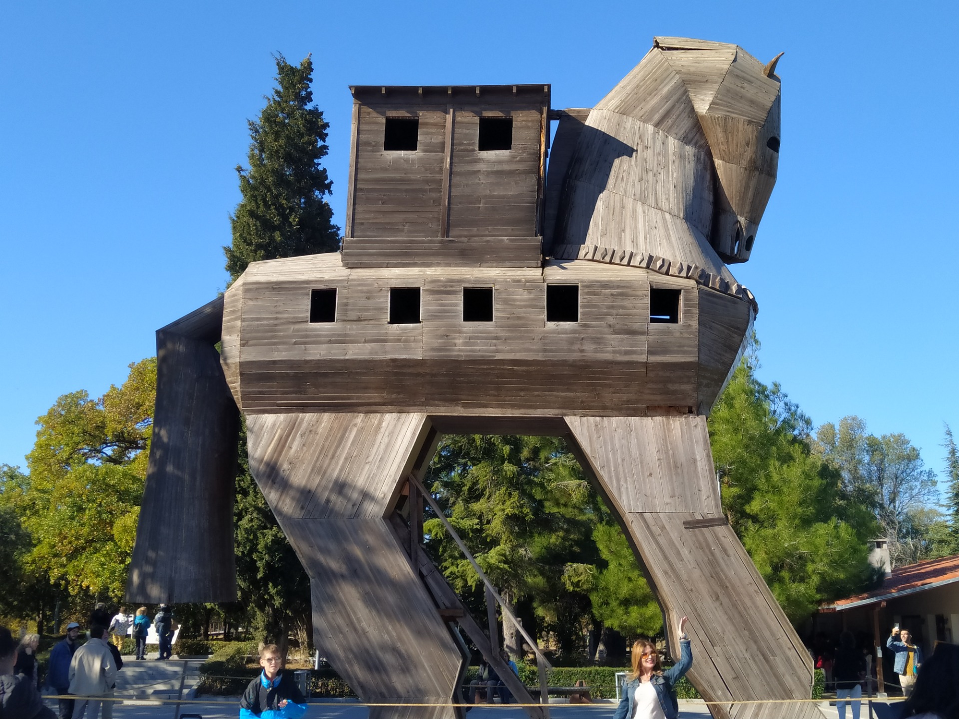 Η Τροία, η πόλη θέατρο του Τρωικού πολέμου που περιγράφεται στην Ιλιάδα του Ομήρου. Περιπλανηθήκαμε στα αρχαία ερείπια της και θαυμάσαμε το αρχαίο θέατρο ,το Παλάτι, την Ακρόπολη, τμήματα των οχυρώσεων αλλά και τον εντυπωσιακό Δούρειο Ίππο.