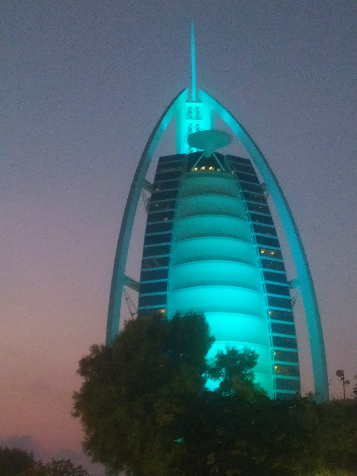 We were particularly impressed by the Burj Al Arab, also known as the Tower of the Arabs, which is a skyscraper and luxury hotel in Dubai, United Arab Emirates. It stands at 321 meters tall and is ranked as the fourth tallest hotel in the world. It is built on an artificial island, 280 meters offshore from Jumeirah Beach, and is connected to the mainland by a curved bridge. The sail-shaped design of the entire structure evokes architectural awe while being characterized as the only seven-star hotel in the world. Next to this hotel unfolds a very beautiful beach, Jumeirah Beach, with sand where you can swim freely, relax, and admire the surfers. Close by is the Jumeirah Beach Hotel, which equally impresses with its shape and size. A little further away is Souk Madinat Jumeirah, a local market with many shops. There you can also enjoy a nice meal or drink.